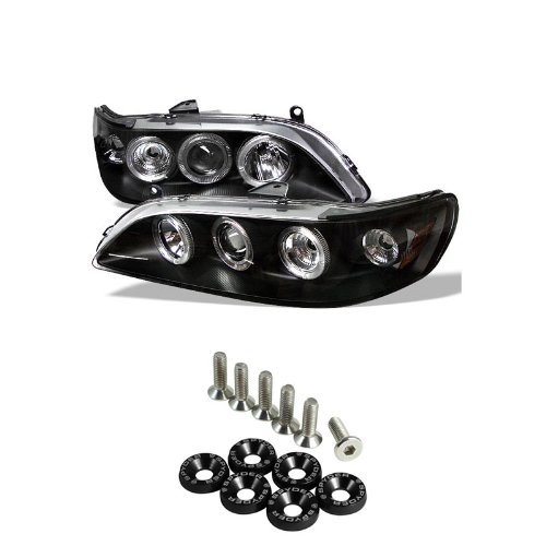 Honda Accord Halo Projector Headlights - Black & Spyder Washer 6pcs - Black Headlights are one of the most important parts of your vehicles safety prevention features. When headlights are dim, have failed or are not adjusted properly, there is a drastic decrease in the driver's visibility. It is essential to equip your car with adequate lighting so you can see and also been seen by others. Spyder Auto headlights offer a sleek, innovative design that delivers optimal quality and instant upgrade to your outdated headlights. Renew your headlights with Carpart4u's easy to install plug and play bolt-on headlights. Each unit with precise measurement for a direct fit. Carpart4u used same OEM quality material to manufacture each headlight unit for a fraction of the price. Carpart4u also carefully considered the possibilities of HID use in their headlights and created all their headlights for completely compatibility for 35 watts HID upgrade kits. Let people see that your car is stands out from the crowd with style while rest assured that the lights meet SAE and DOT standards. This package includes a 6pc washer kit in black Great way to accessorize your engine bay