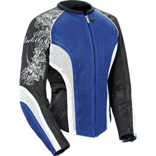 | Joe Rocket Cleo 2.2 Women's Textile Street Bike Racing Motorcycle Jacket - Blue/White/Black / 2 Diva #Like a lot of good things in life, it all started with a motorcycle. An obsession with motorcycles and motorcycle gear morphed into the launch of Joe Rocket in 1994, manufacturing quality motorcycle jackets. Joe Rocket's "Phoenix" nylon jacket sold a hundred thousand pieces because the perforated, fully armored jacket was the first to provide serious hot weather protection and keep the rider cool. Then after sponsoring 17-year-old Nicky Hayden, Joe Rocket became etched in motorcycle racing culture. Joe Rocket went on to expand its motorcycle gear to include helmets, pants, luggage, boots, and gloves - all designed ahead of the curve of protective motorcycle apparel.