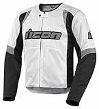 | ✚✚✚ Icon Mens Overlord Nylon Motorcycle Jacket White Large L 2820-1947 Durable nylon chassisRemovable CE-approved Field Armor elbow and shoulder protectorsRemovable dual-density foam back padRemovable wind-resistant insulated vestGathered elastic flex panels on elbows and shouldersFighter Mesh panels in key areas for superior ventilationUpgradable to Icon Stryker CE-approved back protectorIcon attack fit with tailored body and pre-curved armsAll items are sold individually unless specifically described otherwise in the product description